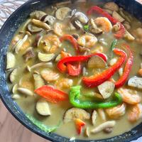 ペーストの代わりにシシトウやスパイスを使って作ってみました。お店や市販のものは辛すぎて家族には出せませんが 手作りなら唐辛子で加減ができるし 牛乳でまろやかになりみんな美味しいと完食でした。ココナッツミルクとナンプラーの風味が決めてですね。
