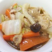 - 7 具材に火が通ったら水溶き片栗粉を回し入れ、弱火で熱しながらかき混ぜます。とろみがついたら火から下ろします。 水溶き片栗粉は、片栗粉1:水2で作ってください。しばらく経つと片栗粉が沈むので、加える前によく混ぜてくださいね。