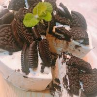 オーブンなしで作れる、さくふわなクッキークリームのチーズケーキの紹介です。おやつやデザートにはもちろん、華やかに仕上がるのでおもてなしスイーツやイベント時にもぴったりです。手軽な材料で作れるので、ぜひお試しくださいね。