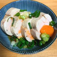 - 7 アルミホイル、ラップを外し1cm幅に切り小ねぎを散らしもみじおろしを添えポン酢をかけたらできあがりです。