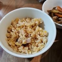 調味料をそれほどよく混ぜずに炊いたらオイスターソースにコーティングされていたお米はちゃんと炊かれずゴリゴリに…。味付けは肉まんの具の味のチャーハンなので、肉まんの具を作るときの参考にもしようと思います。