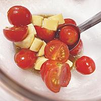 - 1 ミニトマトはヘタを取り、4等分に切り、クリームチーズは1cm角に切ります。