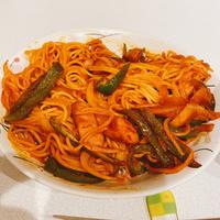 パスタは別茹でにしました。お店で出てくるような美味しいナポリタン!