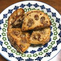 大きなれんこんで平べったくなりました。手順を間違えて最後にめんつゆと水を入れて煮詰めましたが、美味しかったです。