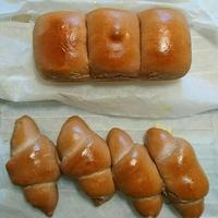 ココアパウダーを入れてロールパンとミニ食パン、やっとキレイに巻くことができました