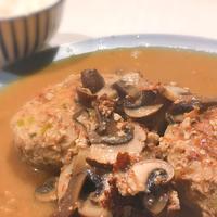赤味噌ではなくこうじみそ、舞茸のかわりにシメジで。ソースにはニンニクすりおろしを少し入れました。これはこれで美味しかったので、ハンバーグの味の幅が広がったような気がします。