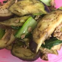 チンゲン菜とナスのピリ辛そぼろ炒め レシピ・作り方