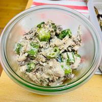 - 4 ボウルにサバの水煮缶、1、3、(A)を入れて和えます。
