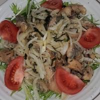 アジが無かったのでサバを使いました。お酢はワインビネガーに変更して、お砂糖は控えめにしました。大葉をたくさん乗せて、とっても美味しい頂きました♪