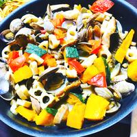 - 8 アサリを入れて中火さっと炒めたら、料理酒を入れて、アサリが開くまで加熱します。