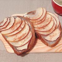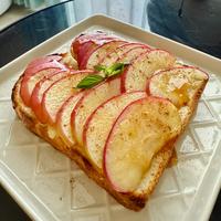ハニーアップルチーズトーストはいかがでしょうか。加熱したリンゴの旨味とクリームチーズの酸味、やさしいハチミツの甘さ、シナモンの香りが口の中に広がり、デザートにもなる一品です。朝食やおやつにもオススメです。