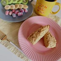 サクッと軽い食感の和風スコーンです。シンプルで素朴な味わいが楽しめるスコーンです。生地を重ねて層にすることで、より軽い食感に仕上がりますよ。短時間で作ることができるので、忙しい朝にもおすすめのレシピです。あんこを添えたり、黒蜜をかけてもおいしいですよ。