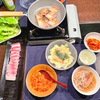 - 5 お皿にサンチュ、2、4を盛り付けて出来上がりです。