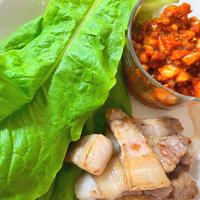 新玉ねぎのタレで食べるサムギョプサルです。お肉とタレをサンチュで巻いて一緒に食べてくださいね。新玉ねぎがたっぷり入ったタレで食べ応え満点です。他のお肉や野菜と組み合わせてもおいしく召し上がれますよ。ぜひ一度作ってみてくださいね。