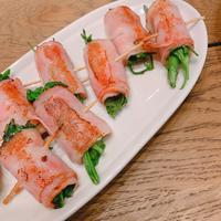 ビールのおつまみにぴったり、春菊とクリームチーズのベーコン巻きのご紹介です。春菊の風味とクリームチーズがよく合う一品です。あっという間にお作りいただけるので、お酒のおつまみとしてもぴったりです。ぜひお試しくださいね。