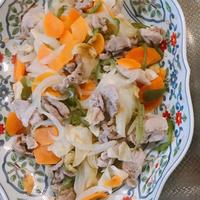 人参は先に1分 次にキャベツ30秒の湯通しで