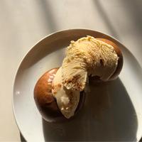 - 4 お皿に盛り、バニラアイスを添えてシナモンパウダーをかけ、ミントを添えて完成です。