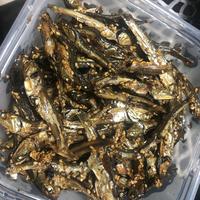 にぼし60gにゴマ、砂糖、醤油、みりん、お酒を全部大さじ1で作りました!