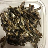- 1 天板に乾燥カタクチイワシを広げ置き、130℃のオーブンで10分程、カリっとなるまで焼きます。