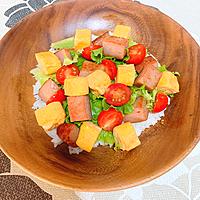 ポークランチョンミートを使って、カフェのようなオシャレな丼ができますよ。 レタスとミニトマトを入れて、サラダも一緒に食べられちゃいます。 ケチャップ以外にもお好みの味付けでアレンジしてみてくださいね。