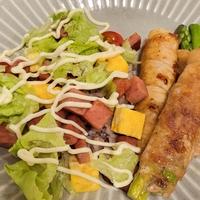 いわゆるスパムだと思うのですが100gで買うのは至難の技なのでサラダチキンのハーブ味で代用しました。