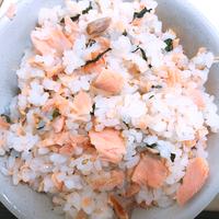 塩鮭を焼いて混ぜごはんにしました。塩鮭の旨味に、大葉と白いりごまの風味がアクセントとなり美味しいです。お好みの薬味を入れるとアレンジが広がります。おにぎりにしても美味しく、夜食にもぴったりなので、是非お試しくださいね。
