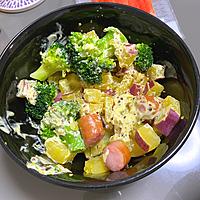 簡単。からしマヨに少しだけ醤油を。サツマイモは皮つき。いんげんに替えてカロリー抑えました。食べる前に胡椒と胡麻。また作ります。