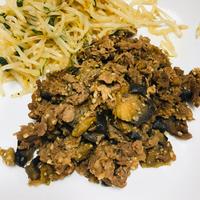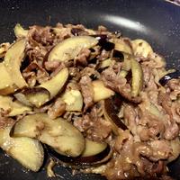 - 4 ナスに油がなじんだら2を加え、中火で炒めます。牛こま切れ肉に火が通り、汁気が少なくなったら火から下ろします。