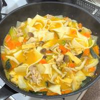 - 6 粉がついたままのほうとうを鍋に直接入れ、火が通ったら完成です!
