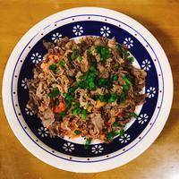 大根おろしたっぷり、さっぱり美味しい牛こま切れ肉のおろしポン酢です。肉の味付けは塩こしょうのみでシンプルな味付けなので、おろしポン酢とも相性がいいです。さっぱりしているけど、ガッツリ感はあるので、暑い日の一品としてオススメです。