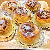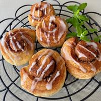 No.569 本当は昨日作りましたが、今日投稿です💦今回、アイシングは半量で作り、水はレシピ通りだと全然足りなかったので、少し多めに入れて作りました😆アイシングはレシピの半量だけど、全然足りました🤗出来上がりがなんか硬そうなパンになってしまったけど、食べてみるとすっごいふんわりしていて、シナモンもすごい効いていて、めっちゃくちゃ美味しかったです😍ちなみに今回、私はシナモンロールだけで食べましたが、上に結構甘めのアイシングがかかっているので、コーヒーと一緒に食べるともっと美味しく味わえそう☕️本当にこんな本格的なシナモンロールが家で作れちゃうのか...。🤔母と弟にも大好評だったので、また作りたいです✨