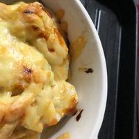 お使いのトースター機種によって焼き加減が異なりますので、様子を見ながらご調整ください。今回は1000W200℃で焼いています。チーズが溶けて、焼き色が付き始めたら止めてください。