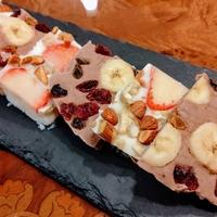 チョコレートバークをヨーグルトでアレンジしてみました。ギリシャ風ヨーグルトの濃厚な味わいを活かしたプレーン味と、ココアパウダーを混ぜ込んだココア味の2つの味が楽しめます。お好みのフルーツやナッツをのせてアレンジしてもおいしいですよ。ぜひお試しくださいね。