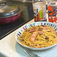 麺ゆがくのが難しかったので水を結構たして作りました!みりんはいれず、水で薄まった分はバターや醤油を少し足しました。気軽に作れるのでまた和風パスタが食べたくなった時に参考にさせていただきます♡