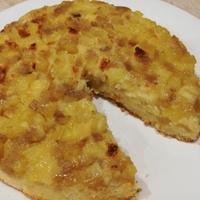 底に砂糖とパイナップルを敷き、タネを上から乗せて30分、焼きあがってからグリルで表面に焦げめを付けました。簡単なのにケーキはサクッと仕上がり大満足です。