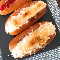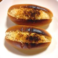 - 5 ロールパンは縦に切り込みを入れて4を入れ、粉チーズとパン粉をかけてトースターで5分ほど焼きます。