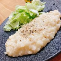 フライパンひとつで作るチーズリゾットです。 とろけるチーズは、2種類使うと、さらに味にコクと深みが出て美味しくなります。 最後にさらに粉チーズをかけることでより濃厚な味わいになります。黒胡椒はたっぷりめがオススメです。