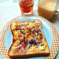玉ねぎマヨチーズトーストにゆかりが加わって美味しいです☆
