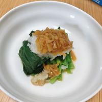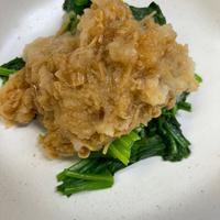 簡単で、あっさり美味しくできました。おろしとなめ茸と麺つゆは混ぜてからほうれん草にオンしたので