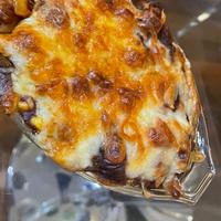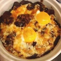 オートミール、ほうれん草のニンニク炒め、ビーフシチューの三層にして卵とチーズをのせました。見栄えも良くとても美味しかったです!