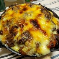- 2 スキレットに1の半量、ビーフシチューを1袋分のせます。