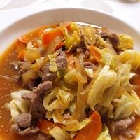 たべれぽ1人目!残念ながらラムもキャベツも無かったのですが、リンゴ、もやしを消費したくて、豚肉で代用。とてもいいお味が染みていてご飯がすすみます!お弁当にも良いです!リピしたいところ。