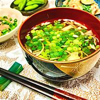 お湯を注ぐだけで手軽に作る汁物です。沖縄では風邪をひいた時に飲みます。味付けは家庭によって異なり、醤油を使うこともありますが、今回は味噌で作りました。とてもシンプルながら、ポカポカと体にしみる味わいです。