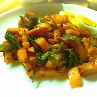 分量通りに作ったら、けっこう辛かった。韮は、1把入れても良いかも