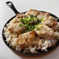 ご飯、豚バラ、小間切れ、チーズ、焼肉のタレ