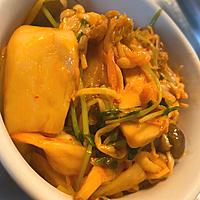 きのこ、ねぎ、豆苗にキムチを加えた炒め物です。キムチの風味で味付けが簡単ですので、もうひと品ほしいときにすぐに作れて便利ですよ。ごはんのおかずにもアルコールのおともにもピッタリです。ぜひお試しくださいね。