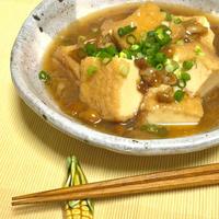 厚揚げはグラグラ煮立ててしまうとすが立って硬くなってしまうので、煮汁が再沸騰したら火加減を中火に落としましょう。 なめこのとろみにより、水溶き片栗粉を使わなくても適度なとろみがでて、おいしく仕上がります。