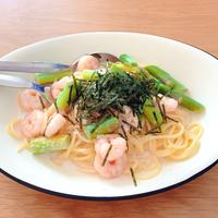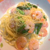 えびとアスパラのたらこクリームスパゲティ レシピ・作り方