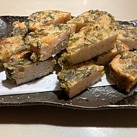 鶏つくねをレンコンに挟んで磯辺揚げにしてみました。生姜がよく効いたつくねに、レンコンの歯応えと青のりの衣の風味がよく合います。お好みで塩をつけても美味しいですが、しっかりと味がついてますので、何もつけずにそのままでも美味しく頂けます。お酒にもよく合いますので、是非お試しくださいね。