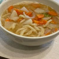 みそとごまでしっかりコクのある汁は、いつものうどんを数段美味しく仕上げてくれます。 野菜がたくさん入っているのでボリュームのある一杯です。 季節の野菜を入れたりと、アレンジもできるのでお好みのうどんを作ってみてください。